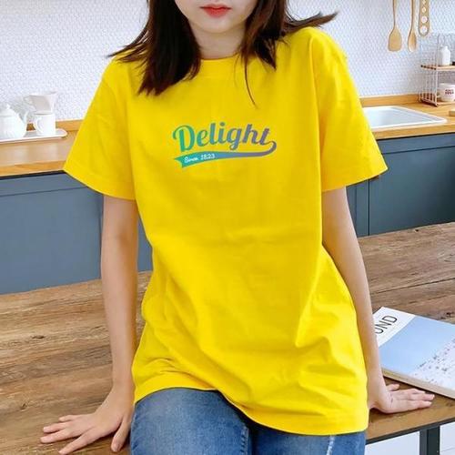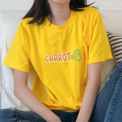[옷자락]여성 키치 노란색 반팔 티셔츠 프린트 빅사이즈 힙커버 티
