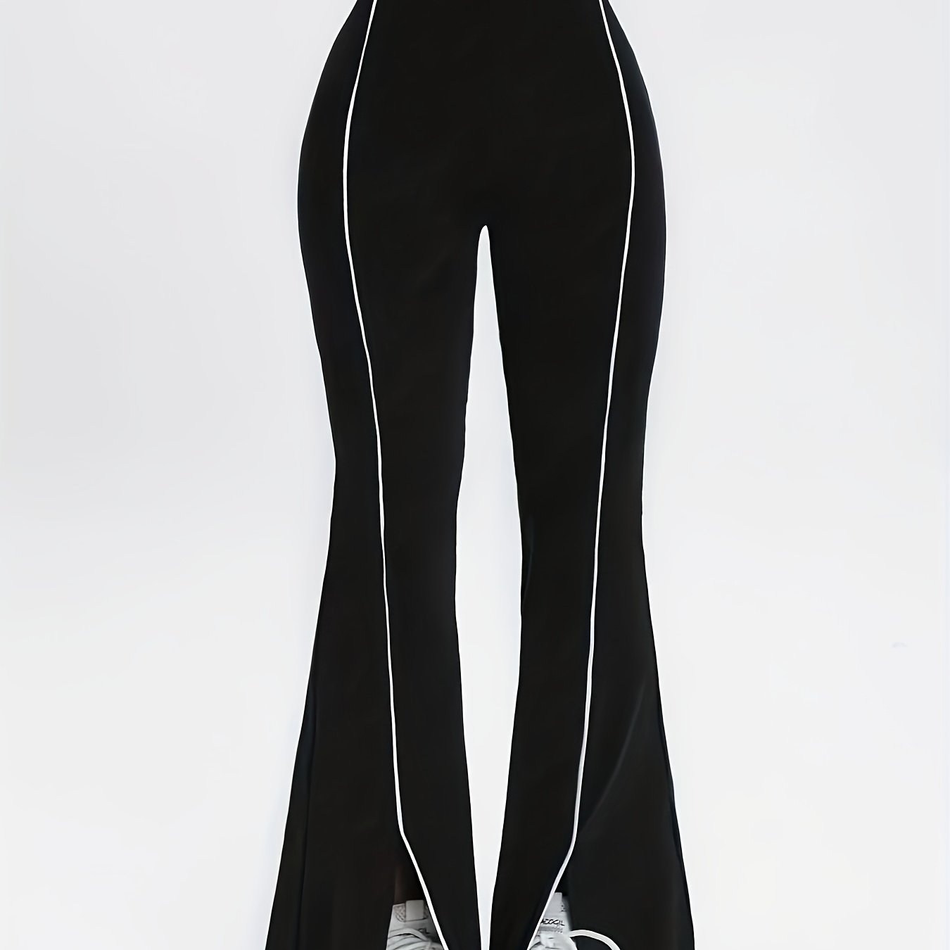 TEMU 블랙 컬러 블록 슬릿 플레어 팬츠, 스파이시 스타일 하이웨이스트 플레어 팬츠, 디자인 중심 니치 캐주얼 롱 팬츠. 높은 탄성과 드레이핑 원단으로 제작되어 편안함과 피부 친화성을 제공하며, 하이웨이스트 디자인은 허리와 복부에 적합합니다.