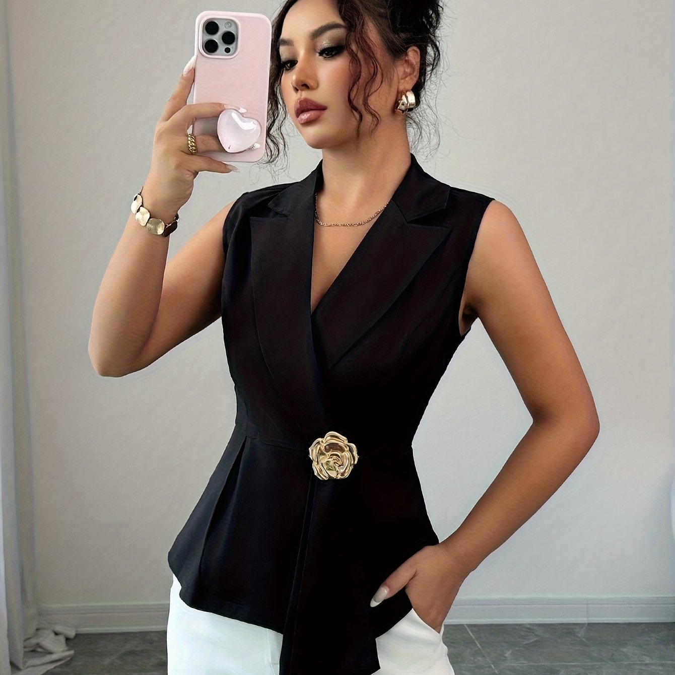 TEMU 이 세련되고 우아한 민소매 베스트 탑은 단색에 메탈릭 액센트가 특징이며 봄, 가을, 겨울에 완벽합니다. 크리스마스, 새해, 발렌타인데이와 같은 축제 행사뿐만 아니라 일상복으로도 적합합니다.