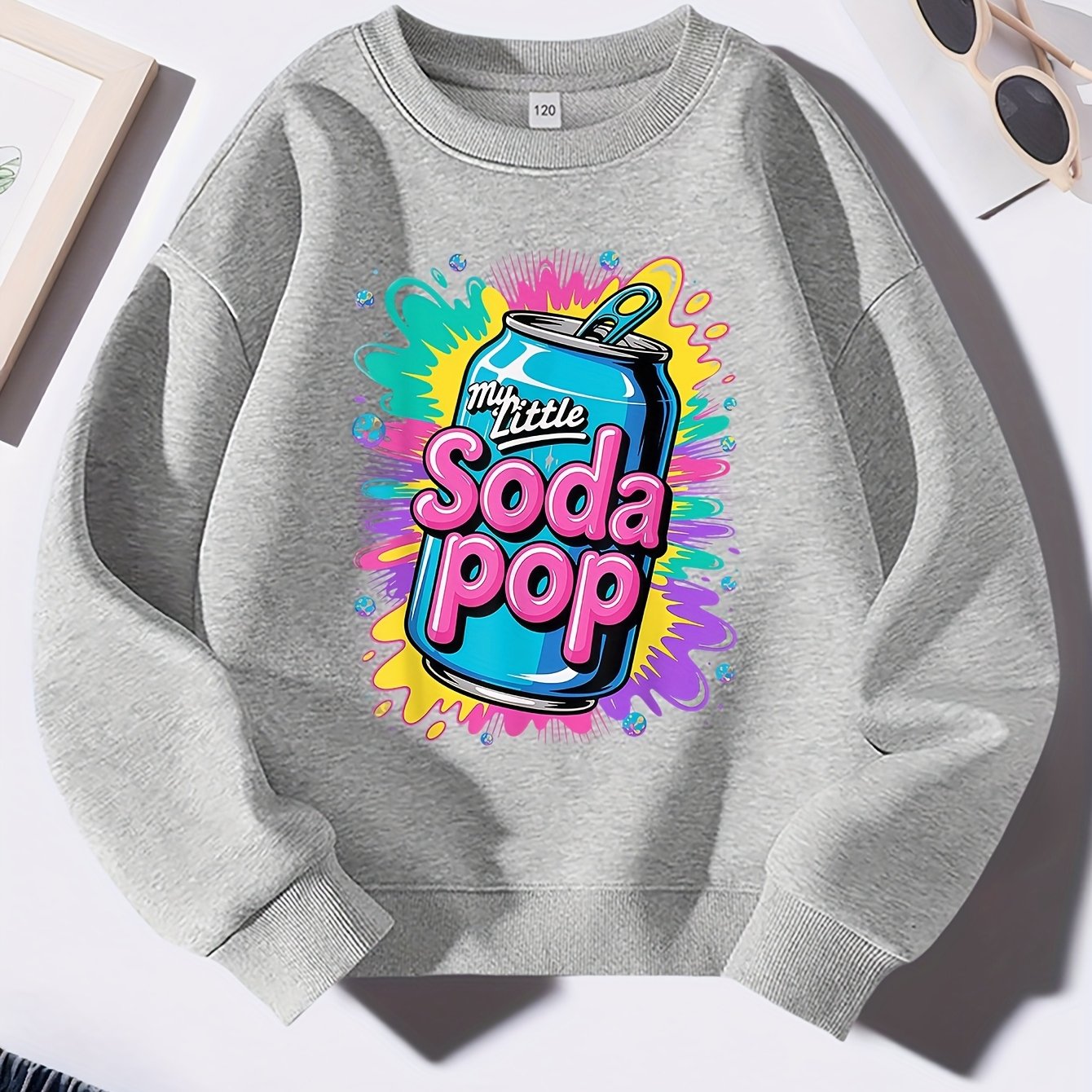 TEMU 여아용 긴팔 패션 프린트 스웨트셔츠, 가을/겨울 캐주얼 상의 (둥근 목), 야외 활동에 적합, 여아용 포근한 스웨터, 포근한 스웨터, |장난기 넘치는 프린트 스웨트셔츠|둥근 목 스웨트셔츠, 여아용 스웨터