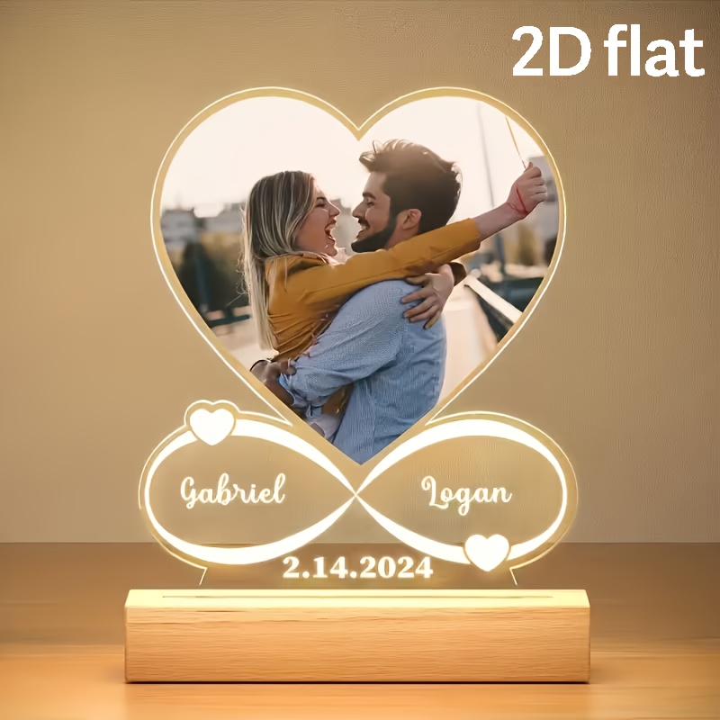 TEMU [2D 플랫] [2D 플랫] 클래식 스타일의 이름과 날짜가 특징인 맞춤 아크릴 사진 로고 (직선형 슬롯 스탠드 포함), 데스크탑 디스플레이에 적합한 다용도 홈 및 주방 장식