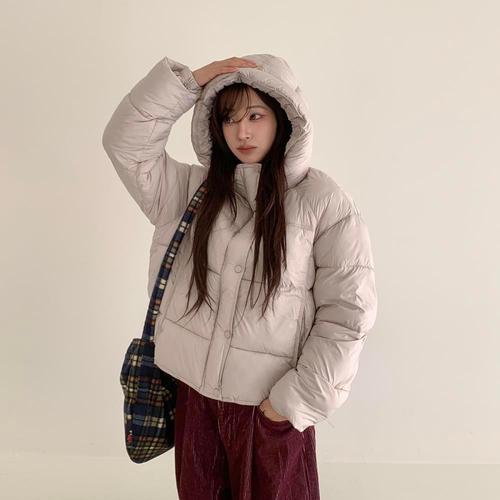 [옷자락] 여성 데일리 루즈핏 웰론 후드 짧은 패딩 점퍼