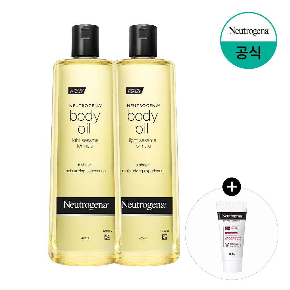 뉴트로지나 바디 오일 473ml, 2개 + 증정(인텐스 리페어 시카 에멀젼 15ml, 2개)
