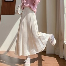 MINA STYLE 플리츠 니트 롱스커트 A라인 하이웨스트 여성 데일리룩