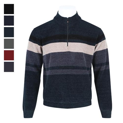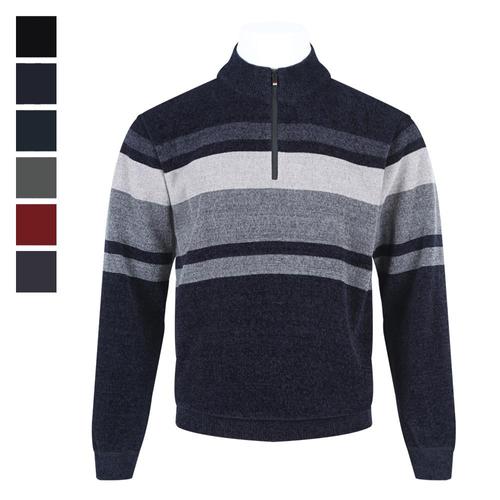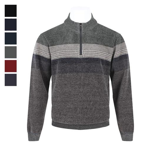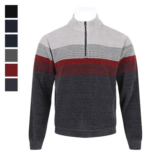 [리빌모아]남자 소프트 고급 밍크기모 배색 반집업 니트 BR-KN-Q006-곤색