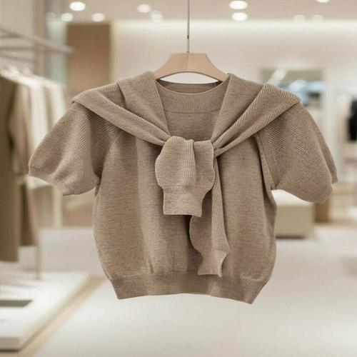 [스타일리쉬바이피클]숄 머플러 세트 반팔 니트 FSDCKT01HE1