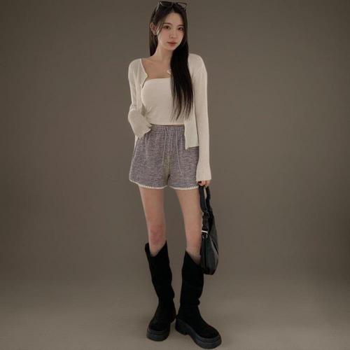 |CMP9369|여성 골지 니트 밴딩 미니 반바지 쇼츠