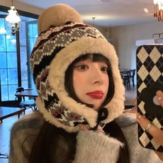 [신상오픈런]|CMC1D62|여자 데일리 클래식 패턴 털방울 겨울 니트 모자_19287452_597559