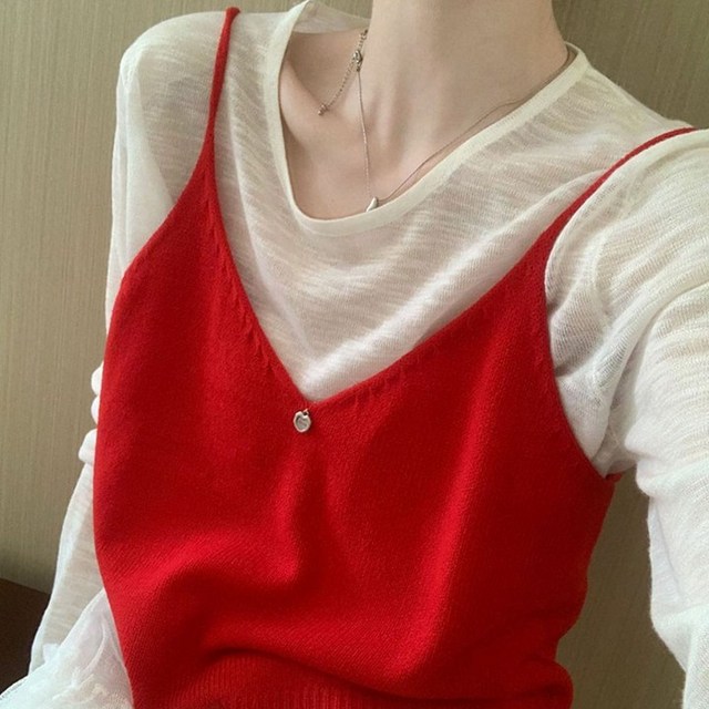 [셀럽하우스]여자 LMGW7627 니트 조끼 뷔스티에 여름 레이어드 뜨개 조끼