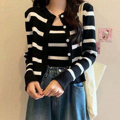 [셀럽하우스]여성 KKHK4959 가디건 니트세트 세트 여자가디건 스트라이