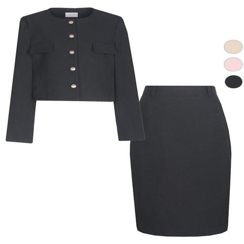 [비비드 시크릿가너]SET 여성 쥬리 봄가을 정장 자켓+미디스커트 세트