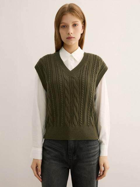 [시스티나] 울 케이블 브이넥 니트 베스트_ASKVTP41010