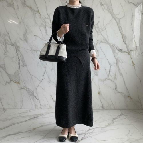 르샵 꽈배기 셋업 니트 롱 스커트