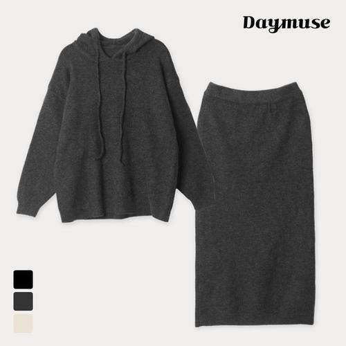 (N) 밀로 니트 SET 후드 탑 밴딩 스커트 세트