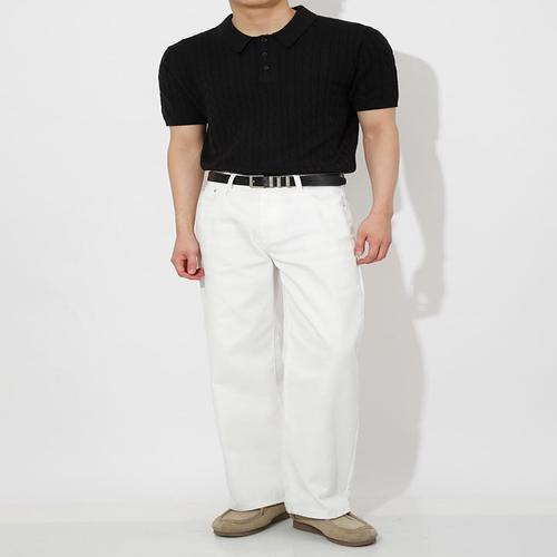 [모로엠] 남성 케이블 니트 머슬핏 카라 반팔티 ROM-TSH-CC