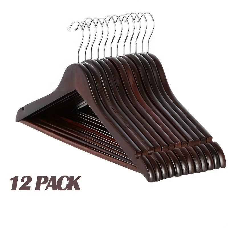 TEMU 6/12개 세트 고강도 솔리드 우드 수트 & 코트 행거 + 미끄럼 방지 팬츠 봉 - 광택 처리된 튼튼한 나무 행거, 정장, 재킷, 드레스, 셔츠, 블라우스, 바지에 적합 - 옷장, 드레서, 옷장 정리에 이상적 (내구성)|바지걸이