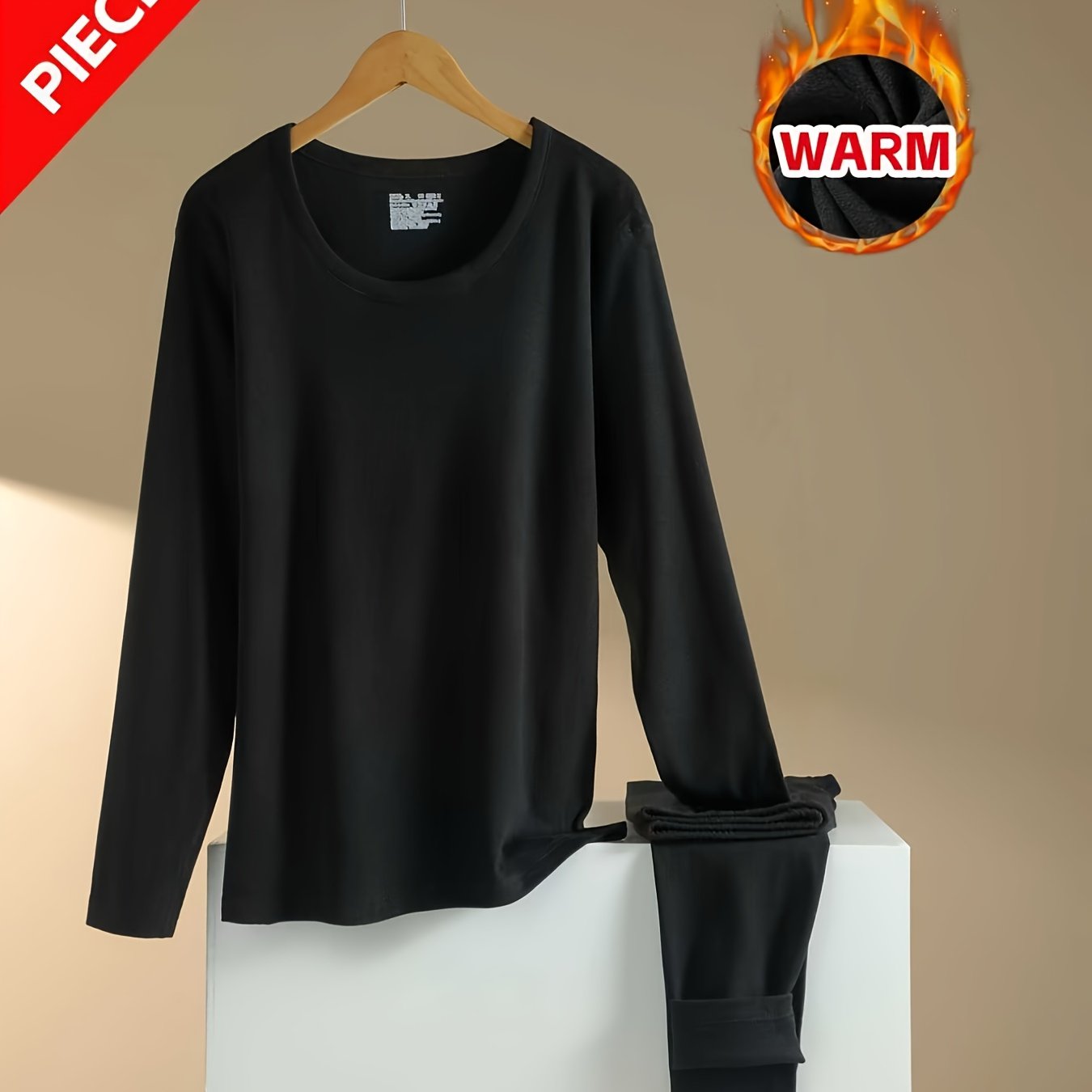 TEMU 남성용 따뜻한 긴팔 라운지웨어 & 바지 세트 | 스키니핏, 크루넥, 중간 정도 신축성 있는 원단, 화이트, 블랙, 그레이 색상으로 제공