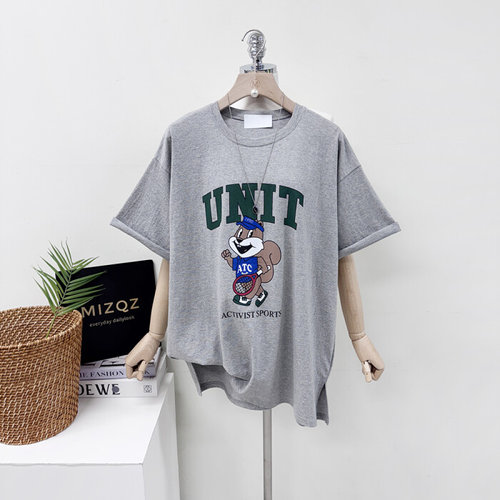 미즈큐즈 / 유니트 다람쥐 프린트 오버핏 박시 반팔 티셔츠 4colo