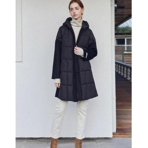 오리털 하이넥 미디코트 3D입체퀼팅 겨울 여성경량패딩 덕다운 배색 점퍼 잠바 와365