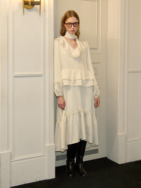 [살롱드욘] 스카프 러플 롱 드레스_ 아이보리