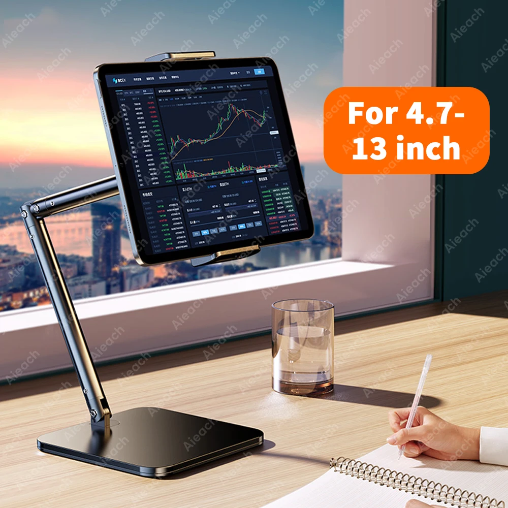 태블릿 스탠드 홀더 15인치 조절 가능한 긴 금속 플렉시블 암(4.7-13인치용) 휴대폰 아이패드 스탠드 인체공학적 데스크탑 홀더 멀티 앵글