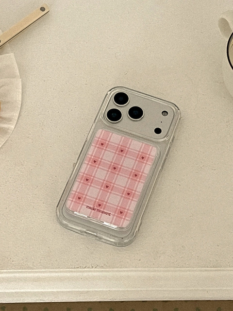 [메이드모먼] tiny heart check 디자인 [맥세이프 투명 카드지갑]