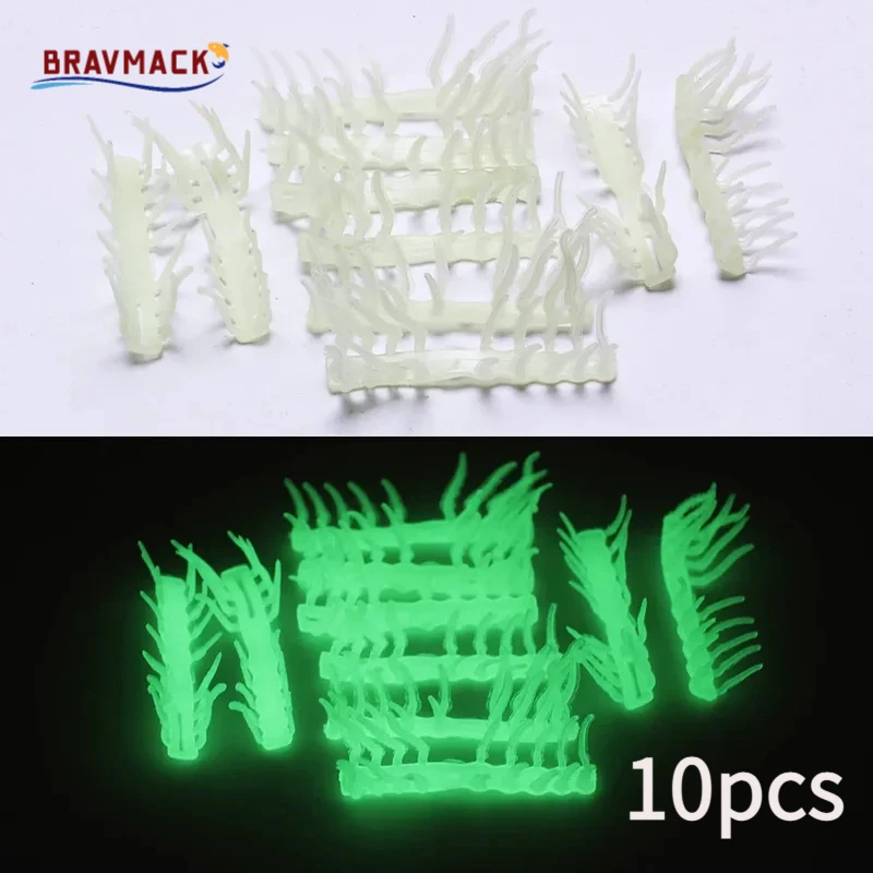10 개 야광 나무 새우 발 나무 새우 액세서리 부드러운 고무 빛나는 미끼 가짜 미끼 액세서리.