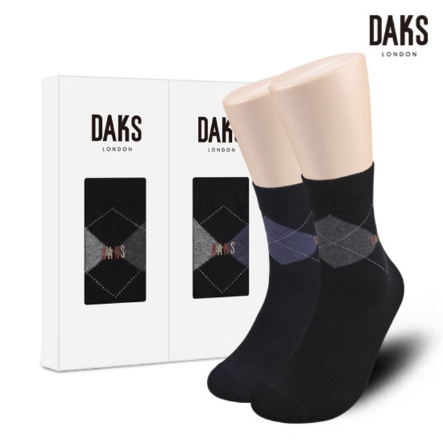 [백화점 동일상품]닥스양말 남성 2족 선물세트 중목 탑포인트사각 25806