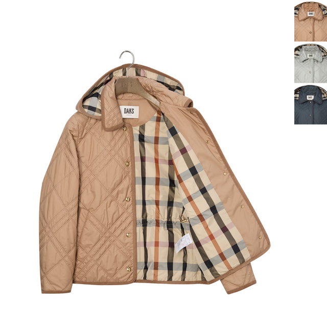 [정품 신상] 닥스 블랙 중기장 체크 후드 포인트 여성 퀼팅 점퍼
