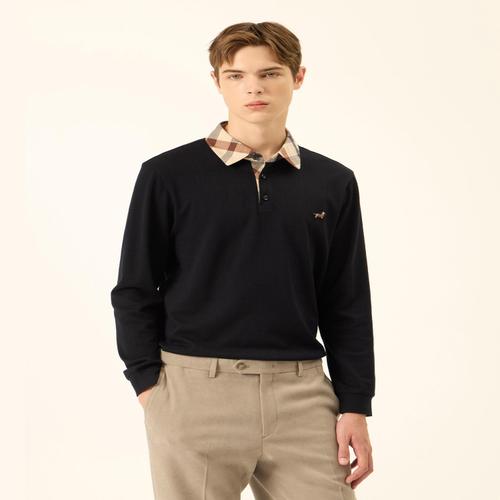 닥스 남성 [/워셔블] 네이비 기모 체크 카라 티셔츠 (DMTS5C301N2)