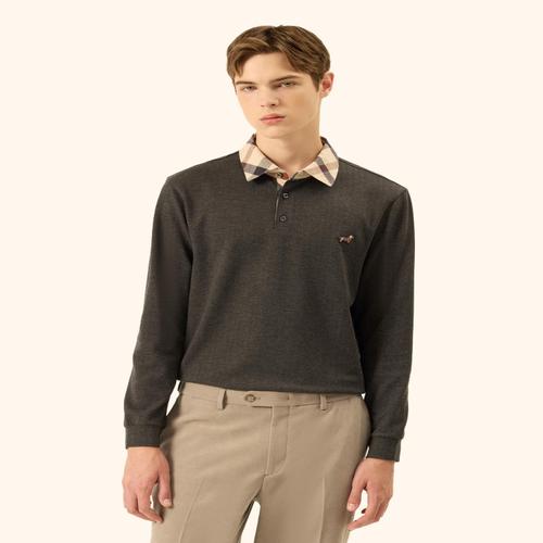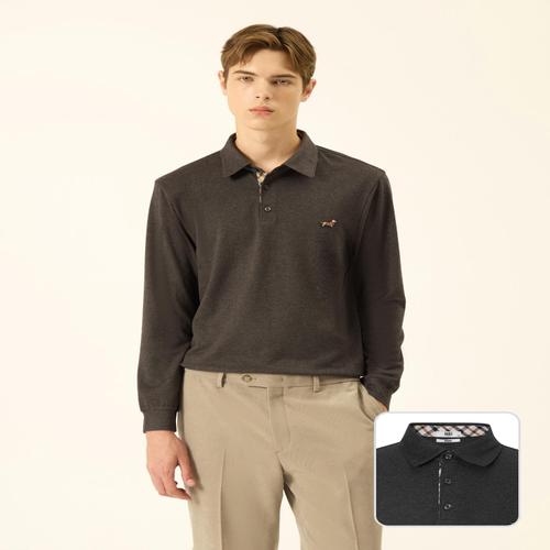 닥스 남성 [닥스훈트] 차콜그레이 기모 헤링본 체크카라 티셔츠 (DMTS5D501CG)