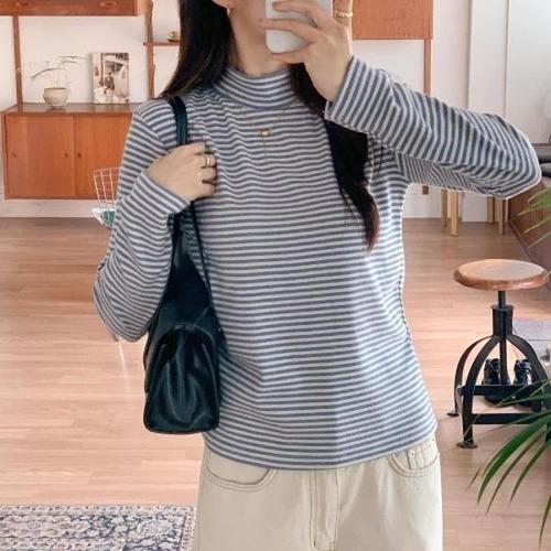 [다잇템][다잇템] 여자 편한 줄무늬 긴팔티 모크넥 기모이너티 티셔츠_23852978_588872