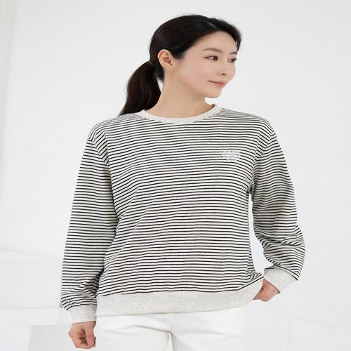 여성용 잔스트라이프 위드곰 오버핏 라운드넥 긴팔 맨투맨