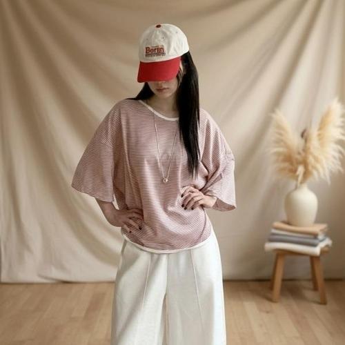 라운드 스트라이프 패턴 반팔티 LK-T024