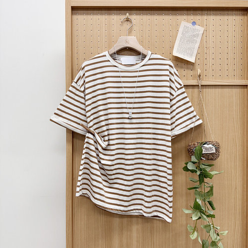 미즈큐즈 / 스트라이프 단가라 오버핏 커플 반팔 티셔츠 3color