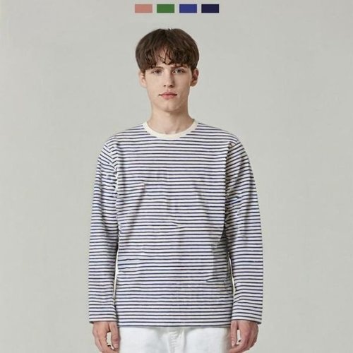 [다잇템_패션]남자 줄무늬 오픈넥 FW 커플티 박시핏 니트