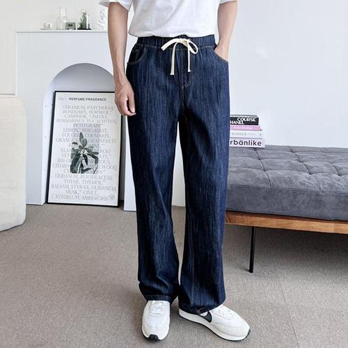2024 드로스트링 남성용 단색 캐주얼 코튼 및 린넨 스트레이트 팬츠, 심플한 패션