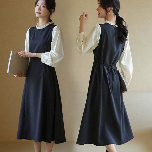 [오너클랜]인기상품 여성 단정한 셔츠 원피스 배색 벨트 정장 하객룩 롱드레스 [WFJLX11_251119]