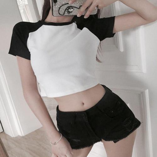 여자 배색 나그랑 코튼 크롭티 반팔티 댄스복 단체티 WEEA216