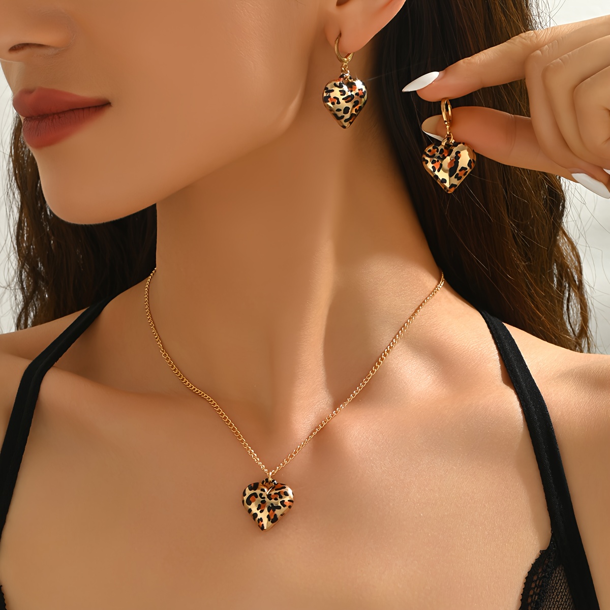 TEMU 여성을 위한 섹시하고 우아한 프린트 하트 펜던트 귀걸이와 목걸이 세트