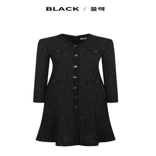 [더아이잗]브이넥 칼라 메탈 트위드 원피스 IMAA0OP02
