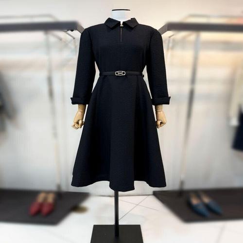 [더아이잗컬렉션]자카드 반집업 칼라 플레어 원피스 -DG_DG