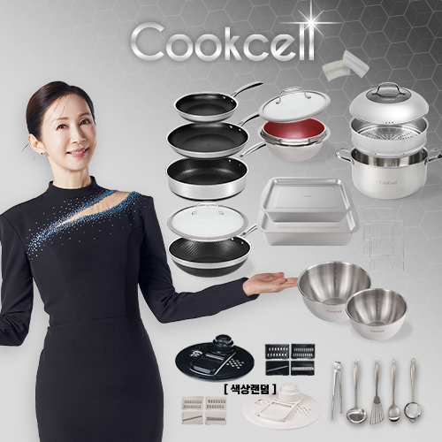 블랙큐브 쿡셀 홀로그램큐브팬+가마솥+곰솥세트(프라이팬22cm, 프라이팬28cm, 소테팬28cm, 궁중팬28cm)+(22가마솥/뚜껑+특대곰솥,복합뚜껑+28찜기+28유리뚜껑+키친툴5종)+쿡셀 믹싱볼2종(20cm, 24cm), 쿡셀 스텐밧드2종+쿡셀 멀티슬라이서
