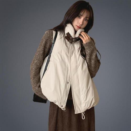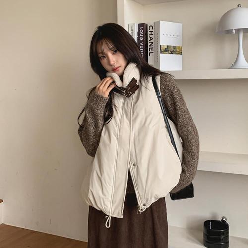 [신상오픈런]여성 포근한 덤블 카라넥 버클 패딩 조끼
