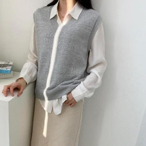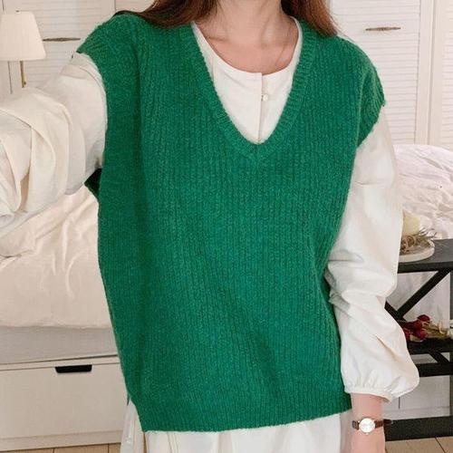 [다잇템]여자 일상룩 보카시 울 덤블 FW V넥 니트조끼