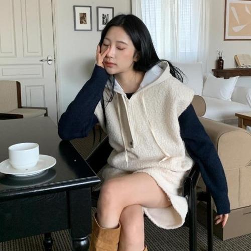 [다잇템]여자 단추 양털 FW 덤블 탱크 후디 망토 조끼