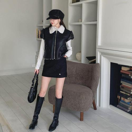 [옷자락]여성 힙무드 덤블 카파넥 무스탕 조끼