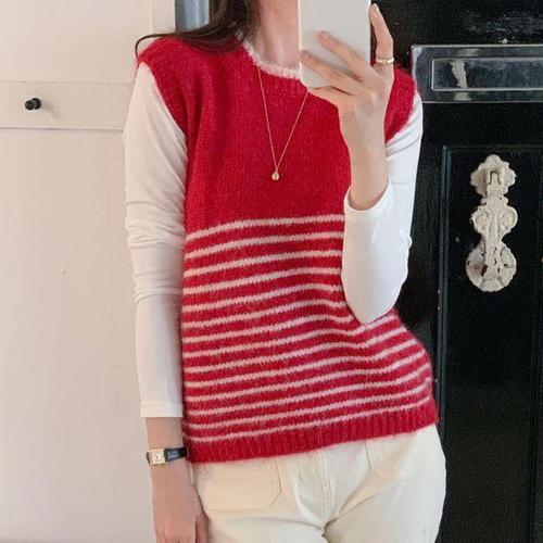 [다잇템]여자 덤블 콘트라스트 레드니트 니트조끼