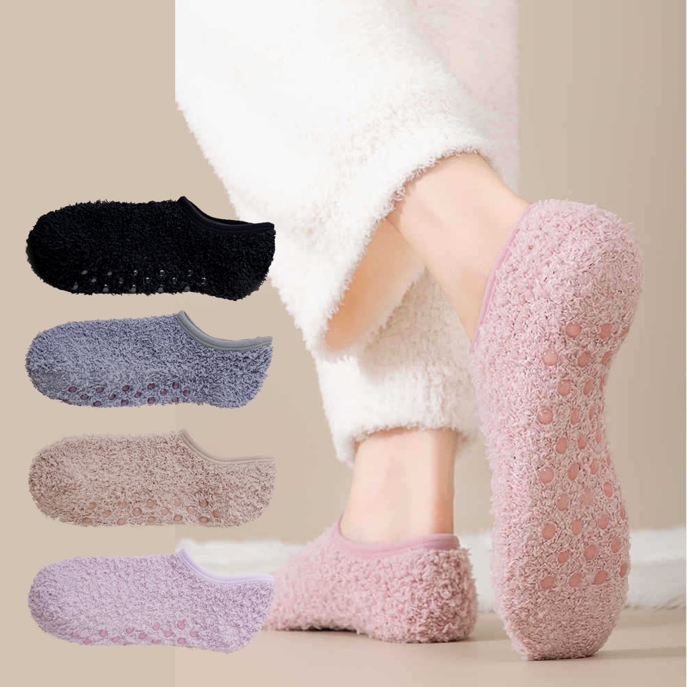 [4켤레] 홈삭스 스마일 수면양말 여성 극세사 기모 포근한 양털 보온 세트