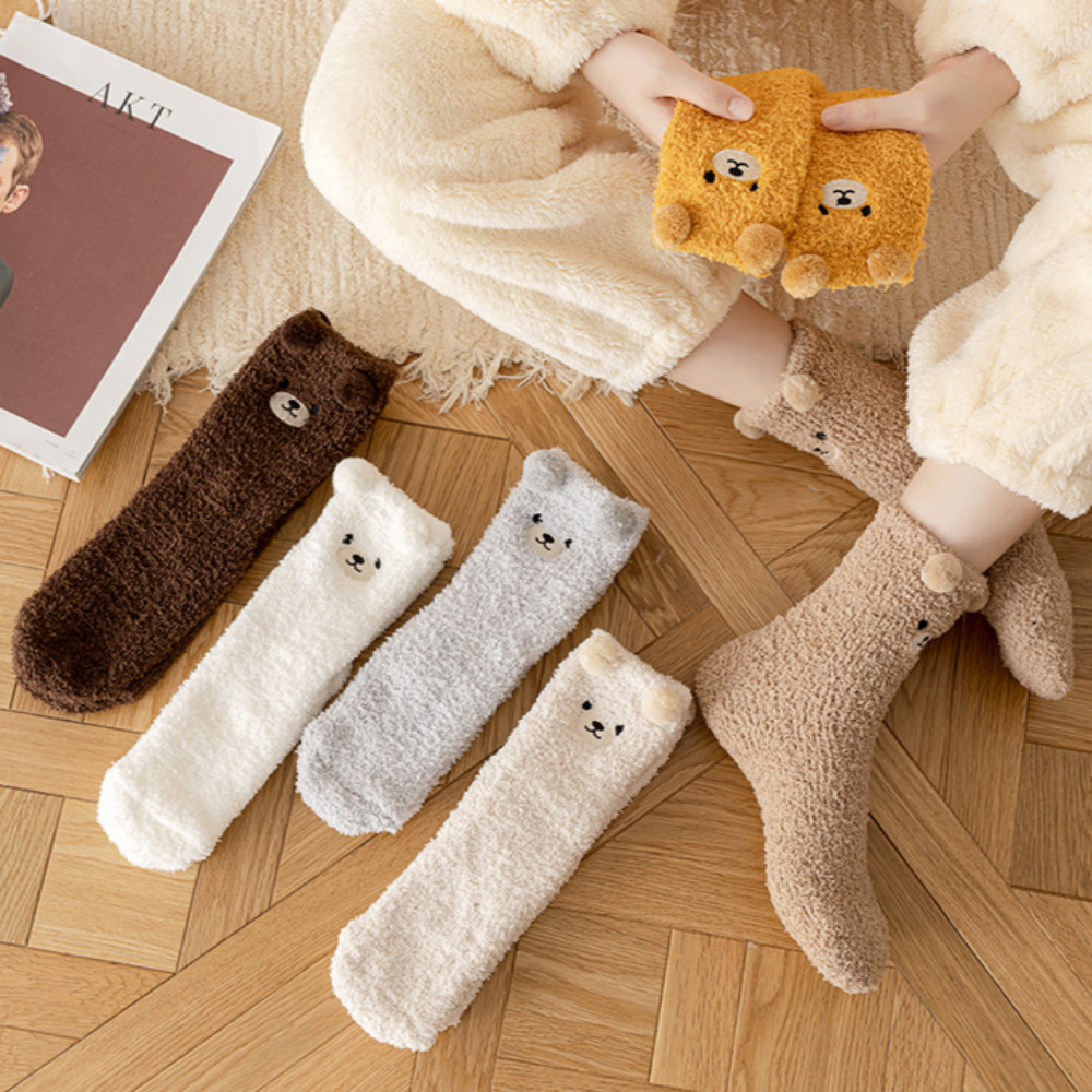 TEMU 6켤레 1세트 귀염뽀짝 곰돌이 수면 양말 도톰 임산부 여성 겨울 패션 여자 학생 방한